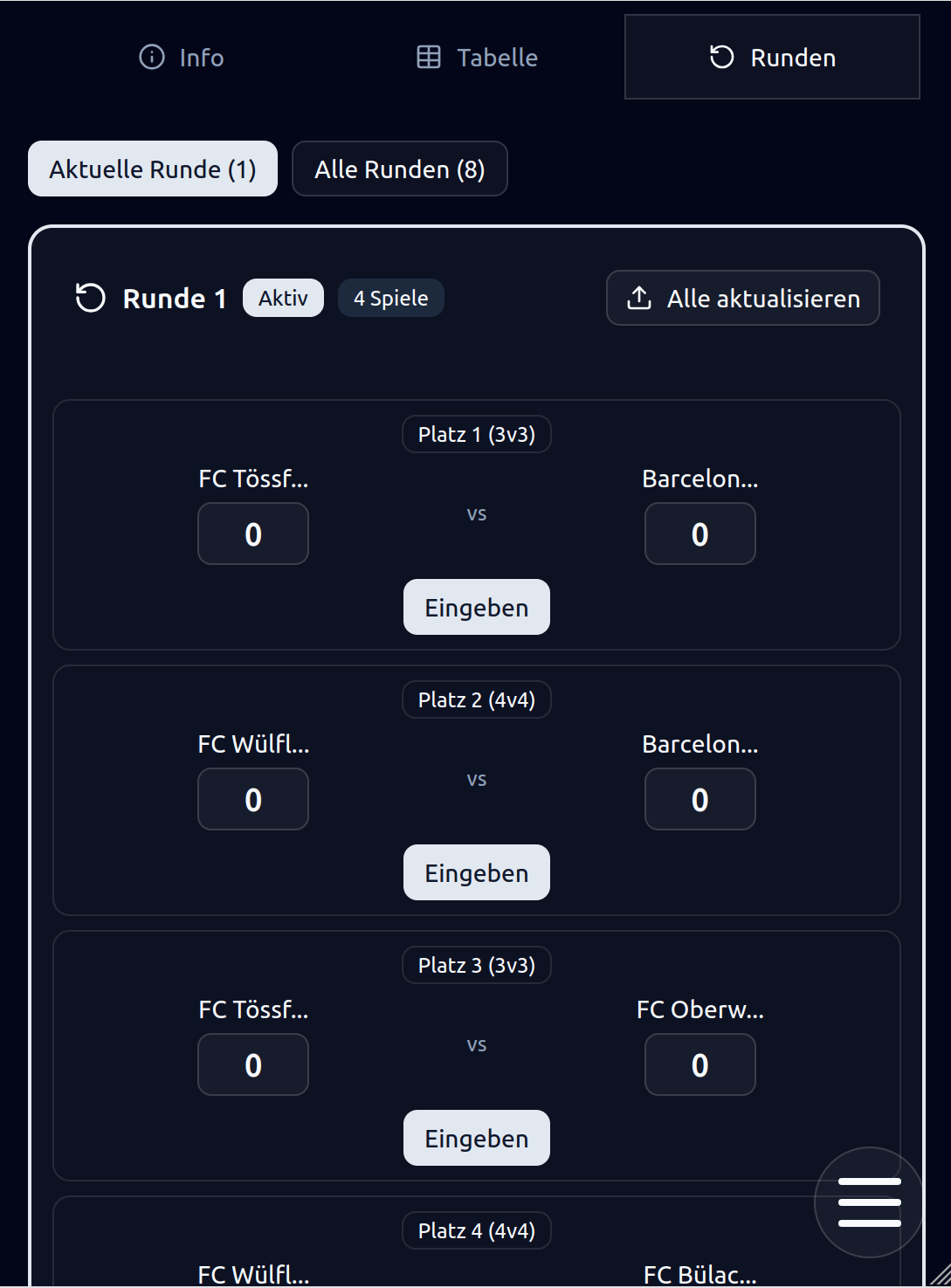 Here you can find a current sample tournament: View Tournament Demo